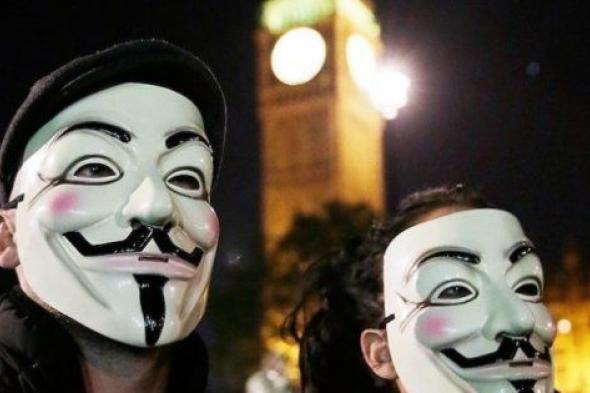 Pero anoche, un grupo de enmascarados también celebró el día 5 de noviembre en el centro de Londres: varios cientos de miembros del grupo distribuido Anonymous acudieron a la convocatoria que iba a concentrarlos en el centro de Londres. El resultado (como se puede ver en las fotos) fue extremadamente estético, ya que todos los asistentes portaban las máscaras de Guy Fawkes que el movimiento adoptó como símbolo después de que pasaran por el filtro, primero de los comics y después de la película V de Vendetta. El filme escrito y producido por los hermanos Wachowski popularizaría también los versos populares "remember, remember, the 5th of November".