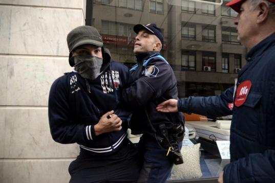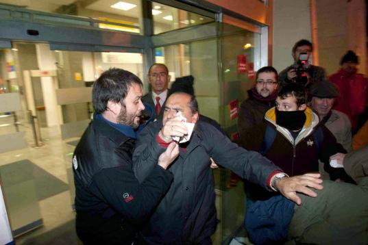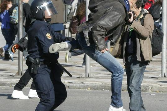 Un policía local reduce a un joven integrante de un piquete informativo, durante la jornada de huelga general.