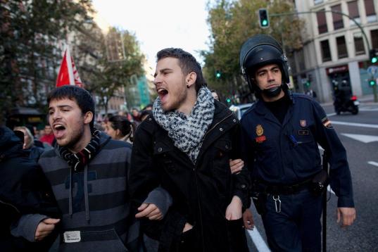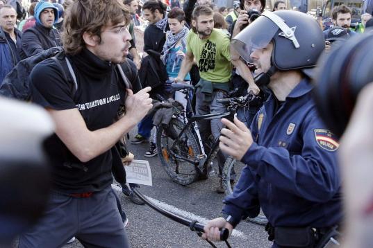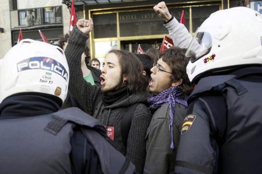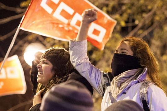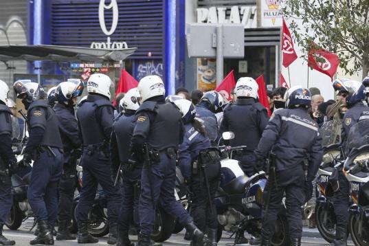 La jornada de huelga terminó con incidentes en torno al Congreso de los Diputados, donde estaba convocada una concentración para rodear la sede parlamentaria. La Policía detuvo a 20 personas en unos altercados que se produjeron al final de la concentración en la zona centro de Madrid, cuando "grupos de radicales" levantaron barricadas y lanzaron objetos a los agentes.