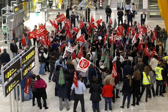 Un piquete informativo recorre la terminal 4 del Aeropuerto de Barajas