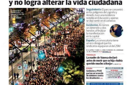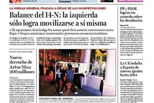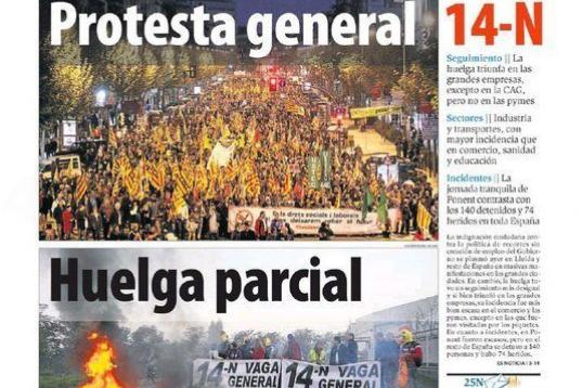 Portadas del 14N: la huelga, en los periódicos (FOTOS)
