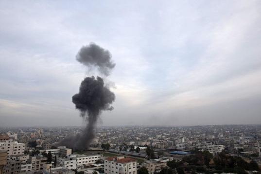 Una nube de humo sobre el cielo de la franja de Gaza vista desde el sur de Israel