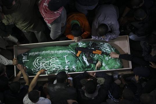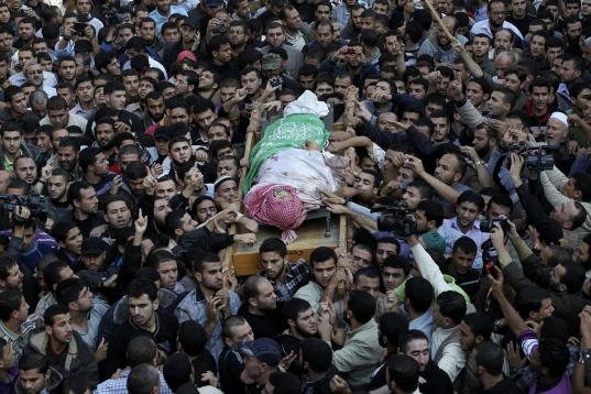 Miles de palestinos asistieron al entierro de Ahmed Yabari, comandante del brazo armado de Hamás en Gaza, las Brigadas de Ezedín Al Kasem, asesinado ayer por Israel en un ataque