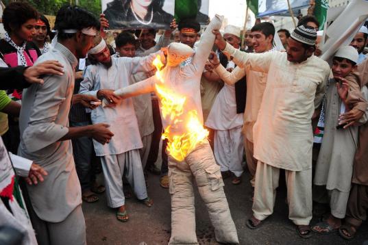 Parte de los testigos se arremolinaron ante los cadáveres, mientras que uno de ellos fue arrastrado por las calles de la ciudad al grito de "espía, espía", según relata Associated Press.