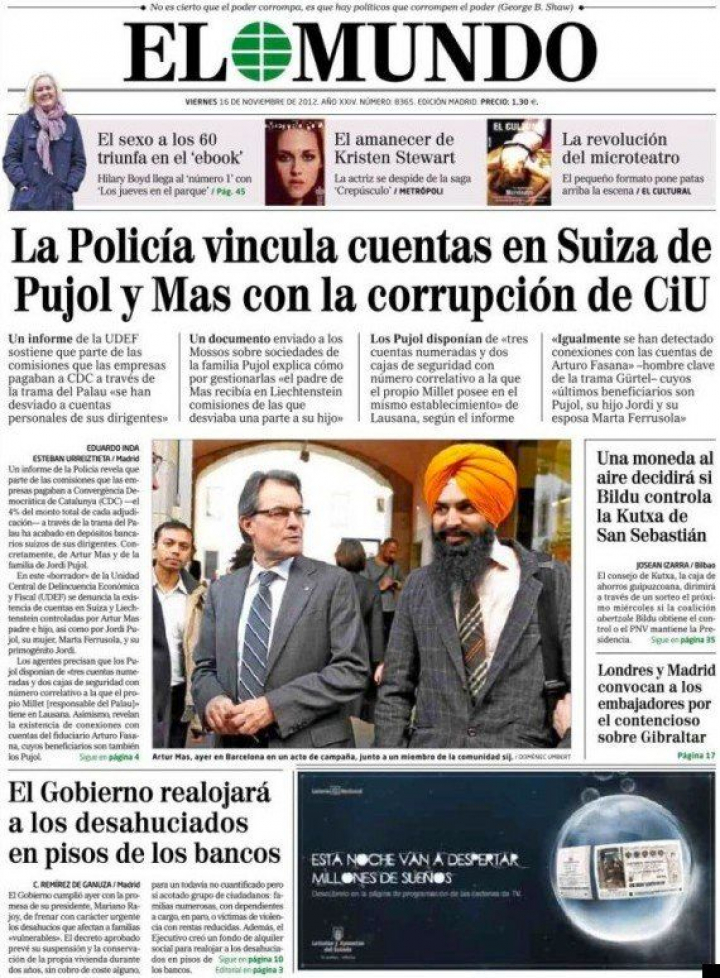 La Fiscalía Superior de Cataluña abrió diligencias de investigación contra el diario por presunto delito de calumnia contra Mas, al publicar un borrador policial sobre posibles cuentas en Suiza donde se cobraron comisiones irregulares del 'caso Palau'