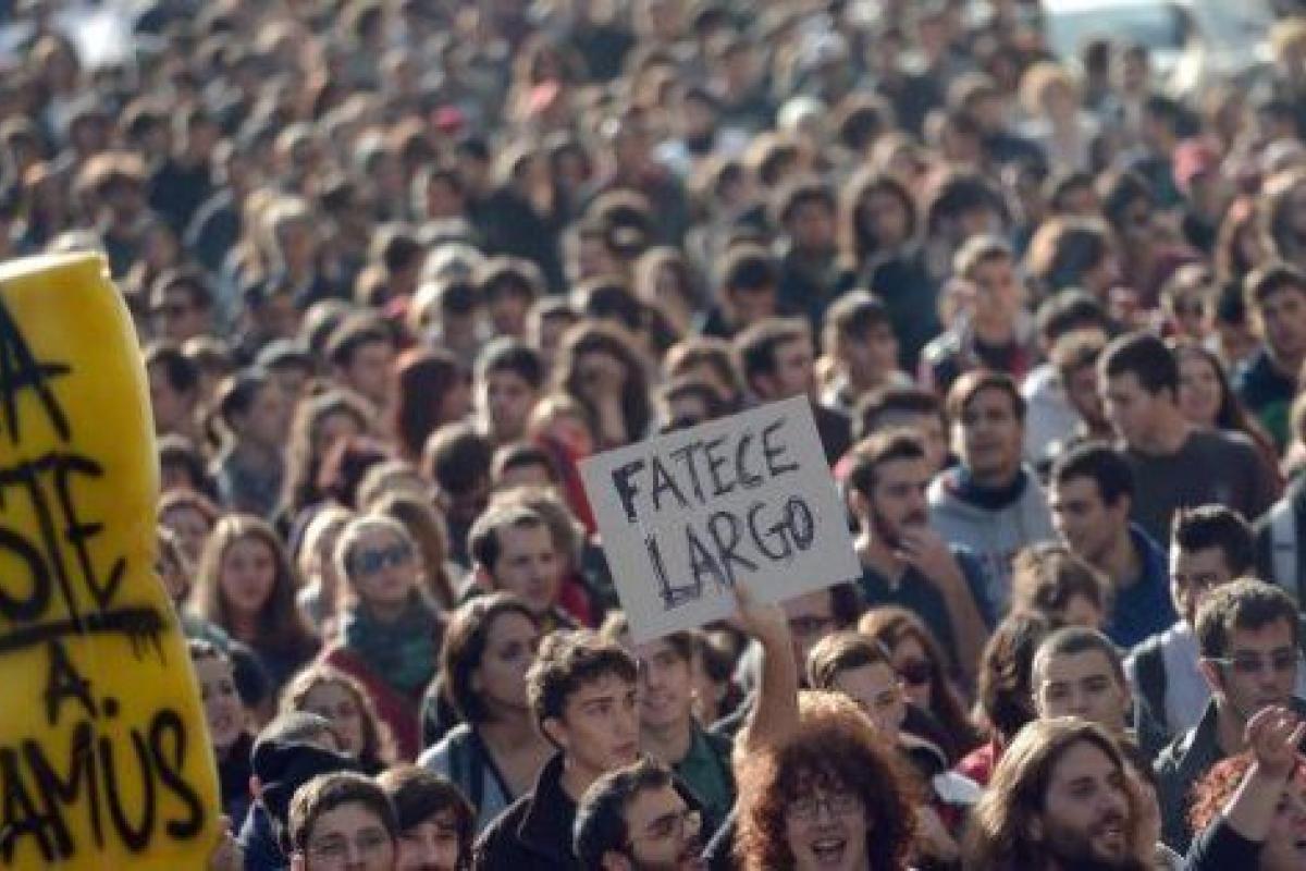 Miles de estudiantes y sindicalistas paralizan Roma con manifestaciones en contra de la austeridad