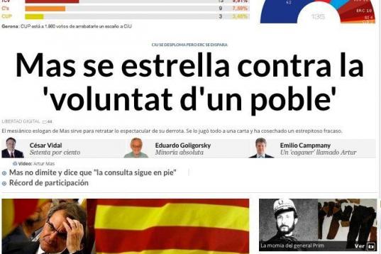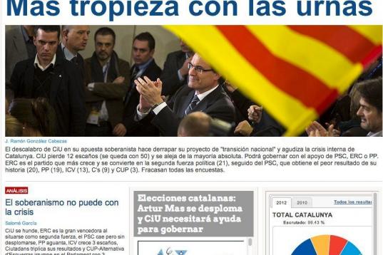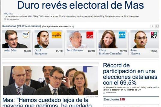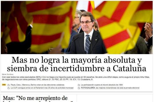 Todos los medios han coincidido en señalar a Artur Mas y su apuesta soberanista como principales derrotados en las elecciones del 25-N en Cataluña.