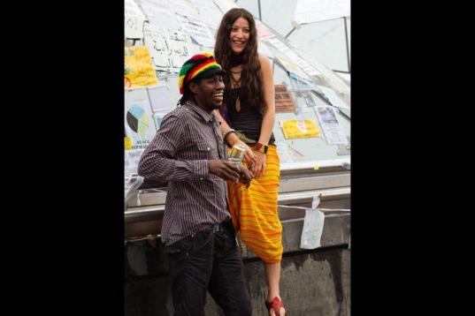 Clave de estilo: sabe posar. Incluso sentado en unos escalones: