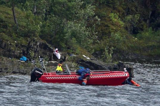 Equipos de rescate buscan cuerpos en las aguas de la isla de Utoya.