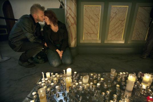 Amigos y familiares encienden velas en la catedral de Oslo.