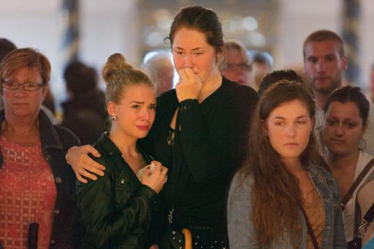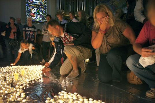 Allegados a las víctimas, durante la vigilia en una de las iglesias de Oslo, al día siguiente de la matanza.