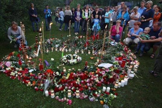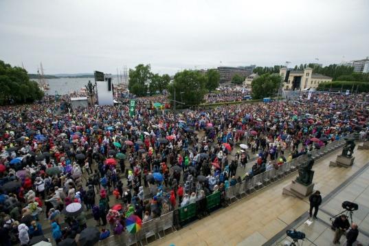 Miles de personas en la vigilia por las víctimas de la matanza de Utoya tres días después del suceso.
