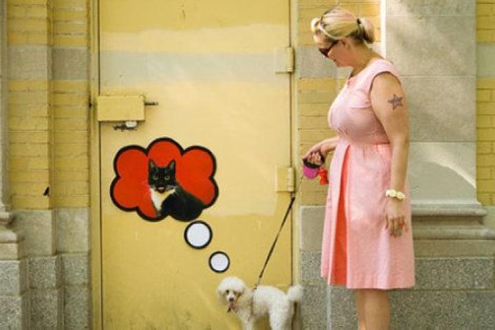 Son propuestas de arte callejero que podría considerarse interactivo porque cobran verdadero sentido ante el ir y venir de las personas. Katie Sokoler, de 25 años y residente en Nueva York, realiza estas intervenciones con stickers (pegatinas) que luego comparte a través de su blog Color me Katie. Mira algunas de sus propuestas en esta galería de L'Huff Post. Basta sacar una fotografía en el momento adecuado para comprobar el efecto de las intervenciones de esta artista: