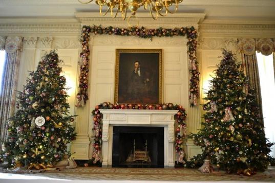 Varios árboles de Navidad -algunos recargadísimos, otros con adornos y colores más modernos-; réplicas de juguete del verdadero rey de esa morada (Bo, el perro del presidente de Estados Unidos), también decoradas, y típicos objetos navideños, com un pisapapeles con un reno forma parte de la imagen de la Navidad 2012 en la Casa Blanca.