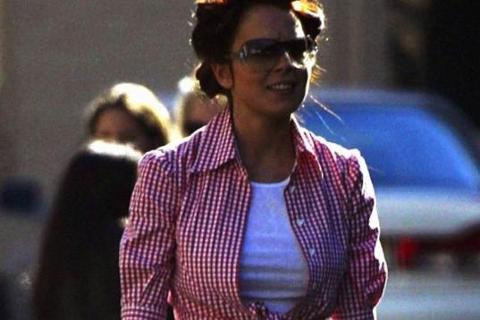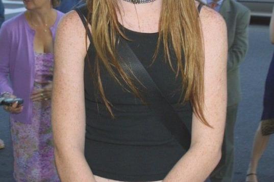 Más rubia y con flequillo, que más tarde volverá a usar con un look plantino. En 2003.