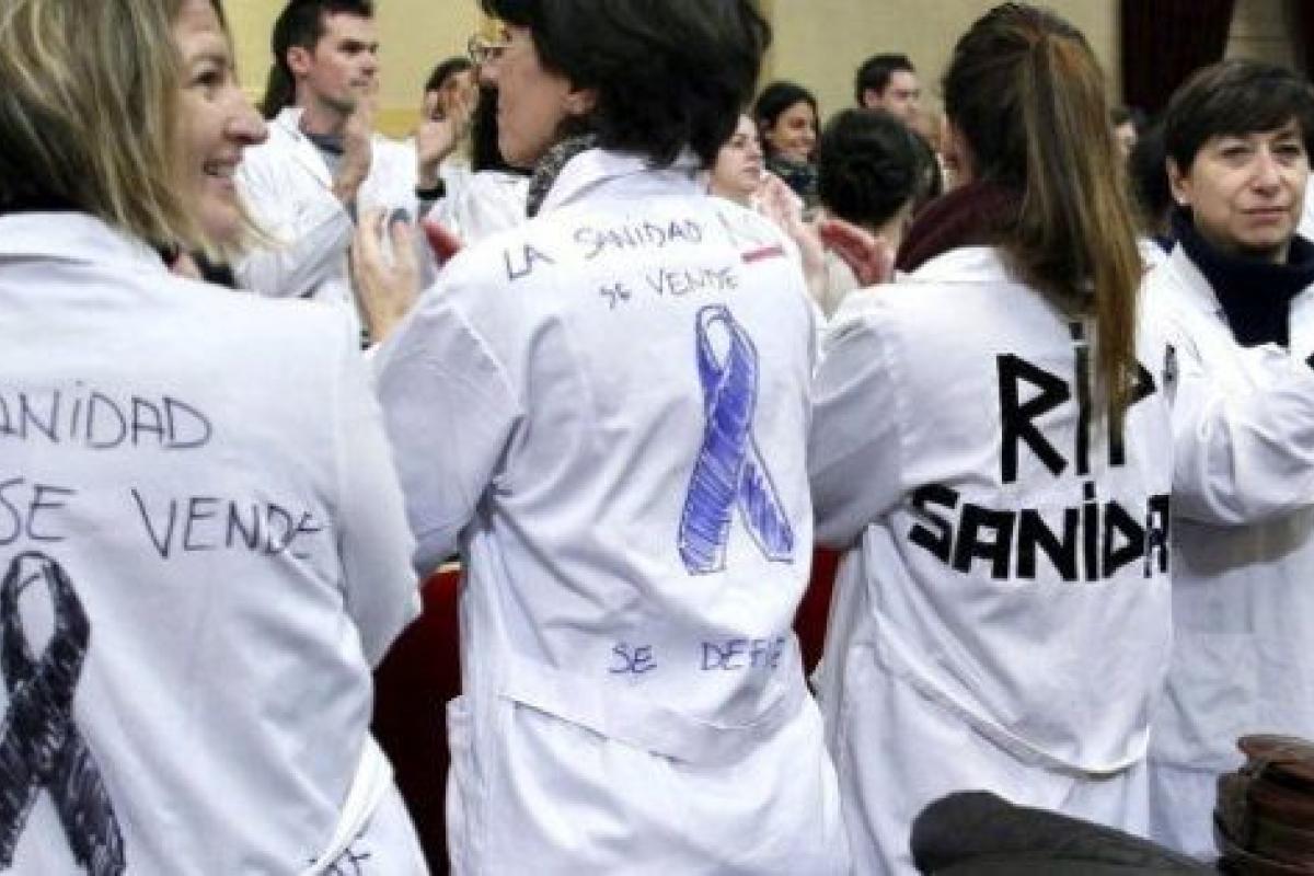 La protesta por la Sanidad llega al Senado. Un grupo de medio centenar de enfermeras y médicos madrileños, que este martes se encuentran en huelga, han aprovechado las jornadas de puertas abiertas para llevar su reivindicación al Senado, en el que además se celebra un programa de RNE en directo que han interrumpido.
