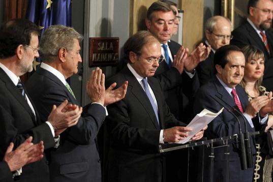 Además, ha destacado que en estos 34 años de Carta Magna España ha vivido una etapa de bienestar y de progreso, y que la conclusión que se puede sacar es que hay posibilidades de superar las situaciones difíciles "trabajando con determinación y coraje". Y que aunque España vive actualmente "una situación muy difícil que afecta a inmensa mayoría de los españoles" al igual que se superó la crisis en la Transición, también ahora se puede salir: "si algo positivo hay que sacar de aquella Constitución es demostrar que las situaciones difíciles y complejas se pueden superar trabajando con empeño, determinación y coraje", ha añadido.