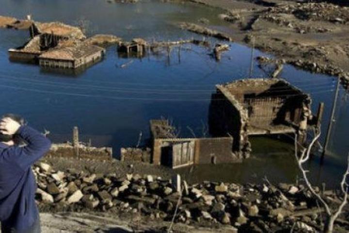 No en vano asegura que desde la construcción de la presa nunca se había visto una estampa similar a la actual, "con las casas prácticamente a ras de la superficie", y terrenos casi secos. "Había bajado el caudal alguna vez pero nunca estuvo tan bajo" como en la actualidad