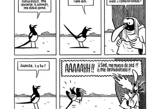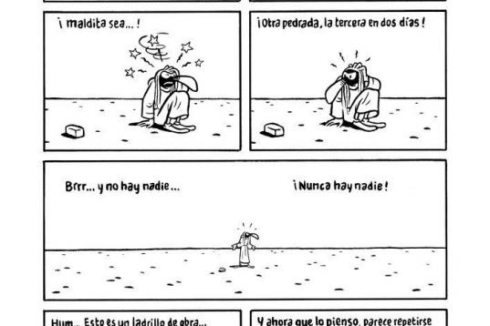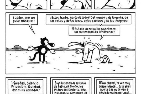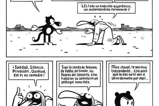 Mucho humor y filosofía acompañan los devaneos, discursos y mosqueos de Nicodemo, Nick, en su autoexilio por el desierto, cansado de todo y de todos. Pero el desierto no está tan vacío como él pensaba. "Conectar cosas es el trabajo de imaginar una historia", dijo Max, uno de los autores de cómic más respetados en España, a su paso por Expocómic y las VII Jornadas Comiqueras, hace unos días en Madrid. A este dibujante, que ha ilustrado portadas para The NewYorker, le dedicó una amplia retrospectiva el Instituto Cervantes, el año pasado.