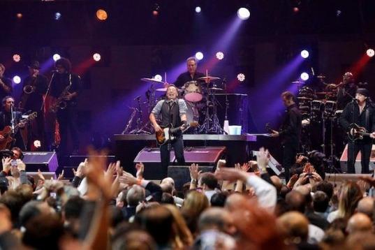 El autor de éxitos como Born In The U.S.A también interpretó otras canciones como Born To Run, pero esta vez con la ayuda de su "vecino" y también estrella del rock Jon Bon Jovi.