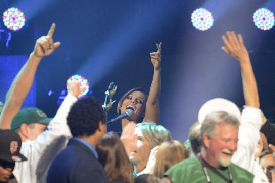 Iluminado solamente con la luz de los teléfonos móviles que alzó en el aire el público, el Madison Square Garden se dejó seducir por el No One de Alicia Keys, quien dijo estar "orgullosa" de la "capacidad de resistencia" de su ciudad y que, como no podía ser de otra manera, puso el broche de oro a la noche con "Empire State of Mind".
