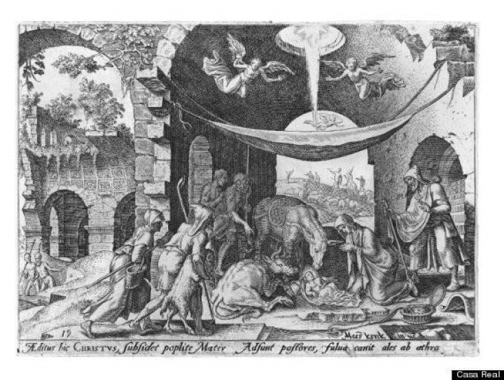 En la web de la Casa del Rey publica la postal navideña de los reyes, una reproducción de "La Adoración de los pastores" perteneciente a la colección de grabados que se conserva en el Monasterio de San Lorenzo de El Escorial, y la felicitación de los príncipes, una foto de sus hijas tomada en su residencia por Cristina García Rodero a principios del pasado agosto, en una sesión con motivo del 40 cumpleaños de Letizia Ortiz.