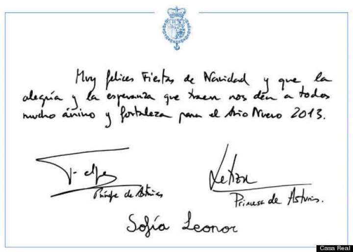 Para la Navidad de 2012, las felicitaciones de la Familia Real se reducen a dos: una de los Reyes y otra de los Príncipes de Asturias, el 'núcleo central' de la misma.