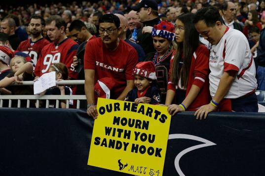 Aficionados de los Houston Texans muestran una pancarta de apoyo a las víctimas de Newtown durante el partido contra los Indianapolis Colts.