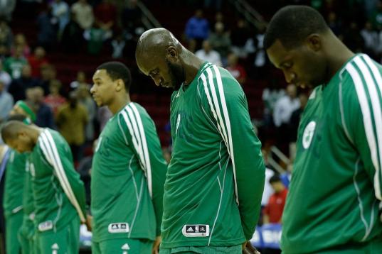 Jugadores de los Boston Celtics guardan un minuto de silencio por las víctimas.
