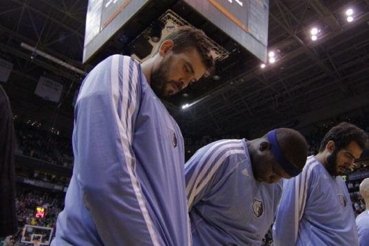 Marc Gasol y el resto de jugadores de los Memphis Grizzlies, guardan un minuto de silencio por las víctimas.