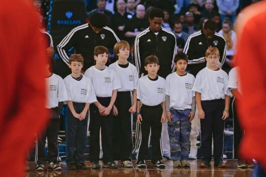 Jugadores y aficionados de los Brooklyn Nets guardan un minuto de silencio por las víctimas.