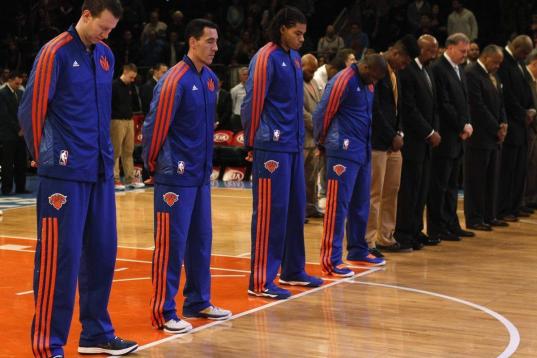 Jugadores de los New York Knicks guardan un minuto de silencio en dolor por la matanza de Newtown.
