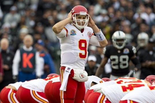 El quarterback de los Kansas City Chiefs, Brady Quinn, luce un brazalete en su brazo izquierdo con las siglas de la escuela Sandy Hook de Newtown.