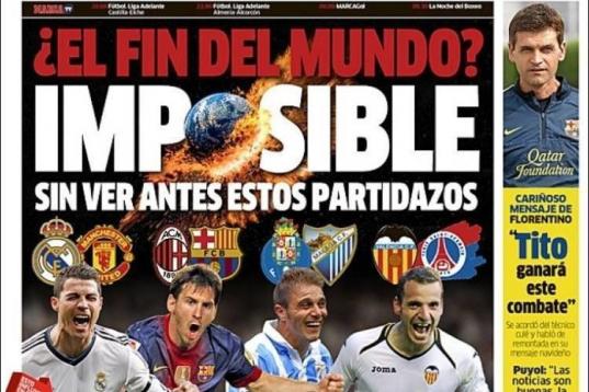 Desde el diario Marca, que abre con ello, hasta otros como El Correo que se alegran tanto de que no se cumpla la profecía de los Mayas que grita: "¡¡¡Seguimos vivos!!!"