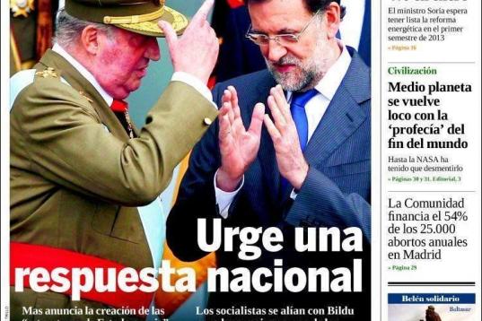 La Gaceta no abre con ello, pero sí le dedica un espacio en portada, destacando que "medio planeta se vuelve loco con la 'profecía' del fin del mundo".