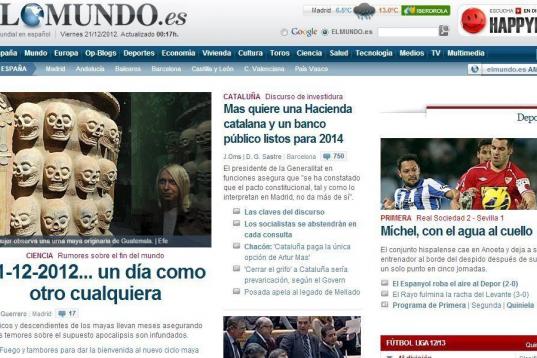 La edición digital de El Mundo abrió a primera hora de la mañana con la profecía maya: "21-12-2012... un día como otro cualquiera"