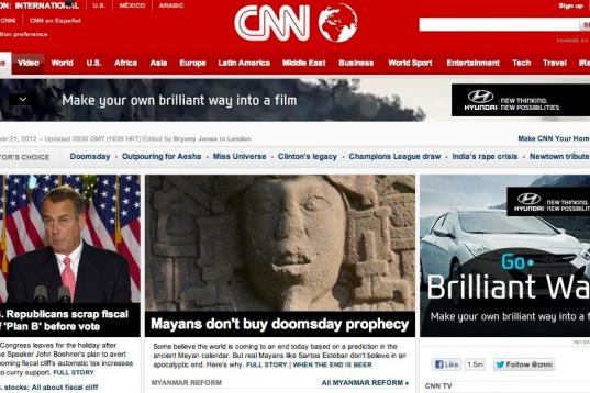 Hasta la CNN, en su edición digital, trata el tema y abre su parte central con el supuesto fin del mundo. "Los mayas no compran la profecía del fin del mundo".