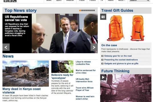 La web de El País no abrió con ello, pero sí dedicó la parte más alta de su columna de la derecha a un análisis de la profecía maya: "El mundo no se va a acabar".