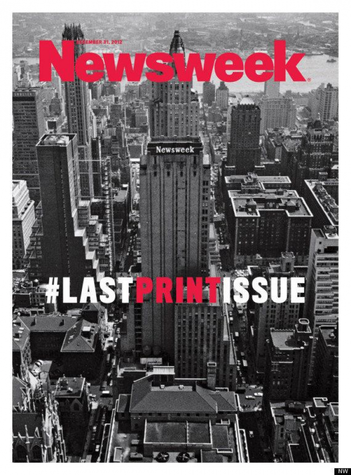 La mítica revista Newsweek dejará los kioskos para siempre el próximo 31 de diciembre. Aunque seguirá viva en su versión online en 2013, su última portada impresa ha dado la vuelta al mundo.