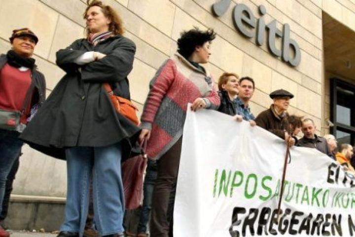 Protesta de Bildu en la sede de EiTB por la emisión del mensaje del rey
