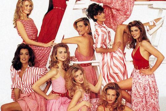 En esta imagen, Crawford (de pie, a la derecha) posa con modelos de los años 90 como Claudia Schiffer, Linda Evangelista o Naomi Campbell. "No era un mal grupo de voluntarias navideñas. Revista Vogue, 1992"