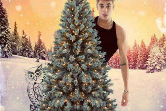 El cantante posa muy navideño con todo el pack: árbol, gorro y nieve