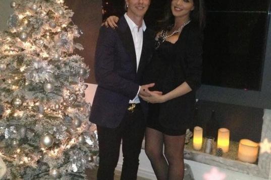 La modelo y el futbolista felicitan las fiestas a punto de ser padres.