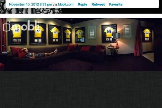 Se quedó sin sus siete Tours y el dopaje en el ciclismo ocupó muchas tertulias virtuales. Su respuesta ante las críticas fue posar cómodamente con sus 7 maillots amarillos. Logró más de 11.000 retuits.
