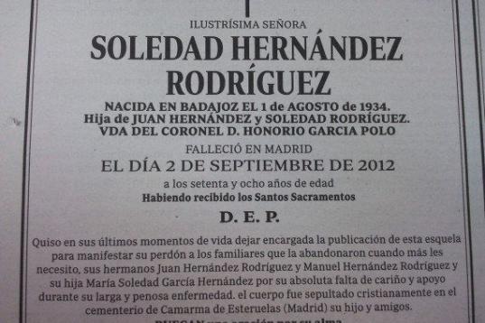 Nada que ver con la esquela de buen rollo de los familiares de Miliki, que rogaban "una sonrisa por su alma".