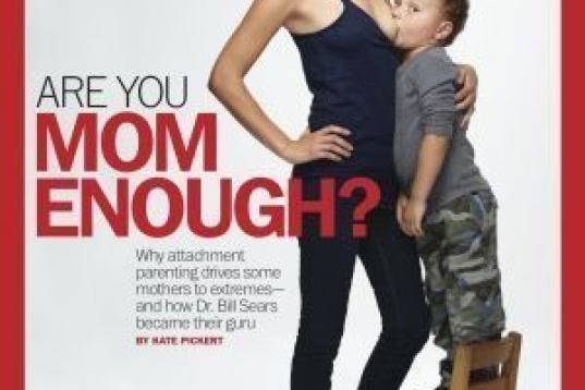 Una mujer de 26 años dándole el pecho a un niño de tres en una imagen titulada “¿Es usted lo suficientemente madre?”. La revista con mayor circulación de Estados Unidos causó polémica con esta portada.