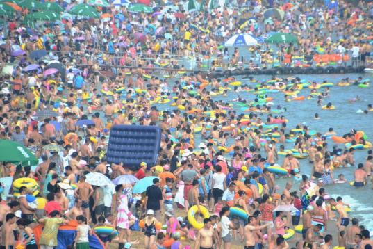 La alucinante aglomeración de la playa de Fujiazhuang, en Dalian (China) hacen que a uno hasta se les quiten las ganas de playa.