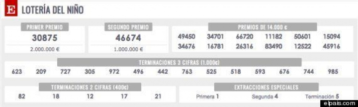 Lotería de 'El Niño' 2013: el 30.875, primer premio, vendido en Alicante, León, Madrid, Murcia y Tenerife