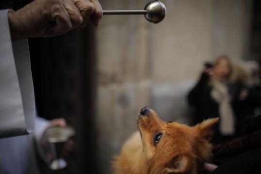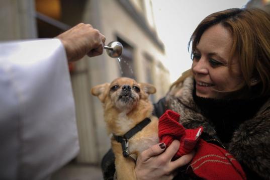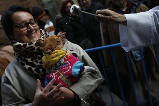 17 de enero, San Antón, patrón de los animales. De ahí el desfile de todo tipo de bichinos -cabras, camaleones, loros, perros, gatos, hurones...- en algunas iglesias.
