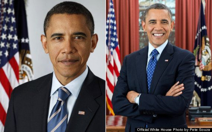 Obama's first and second official portraits